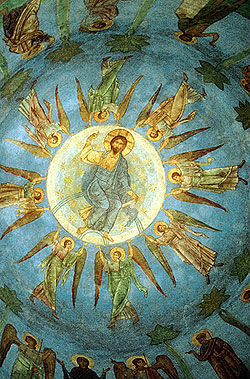 | The Lord’s Ascension. Fresco, Mirozh Transfiguration Monastery, Pskov. Mid 11th c. |