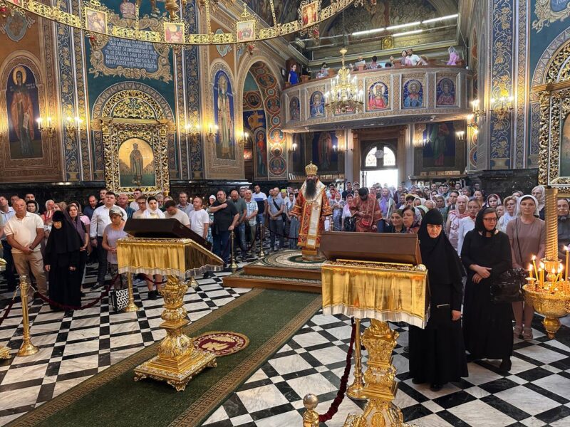 On the Seventh Sunday after Pentecost (The Healing of Two Blind Men and a Dumb Man in Capernaum, Matthew 9:27-35), with the blessing of His Eminence Metropolitan Vladimir, the bishop-vicar, His Eminence Filaret, surrounded by the clergy of the Metropolitan Cathedral, celebrated the Divine Liturgy, which was attended by many faithful.