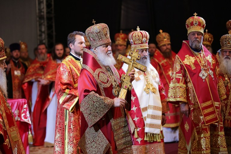After the Liturgy, Patriarch Kirill conducted a Cross Procession that gathered around one hundred thousand Christians, following from the All Saints Church in Yekaterinburg to the Monastery at Ganina Yama, where the bodies of the royal martyr family members were hidden.