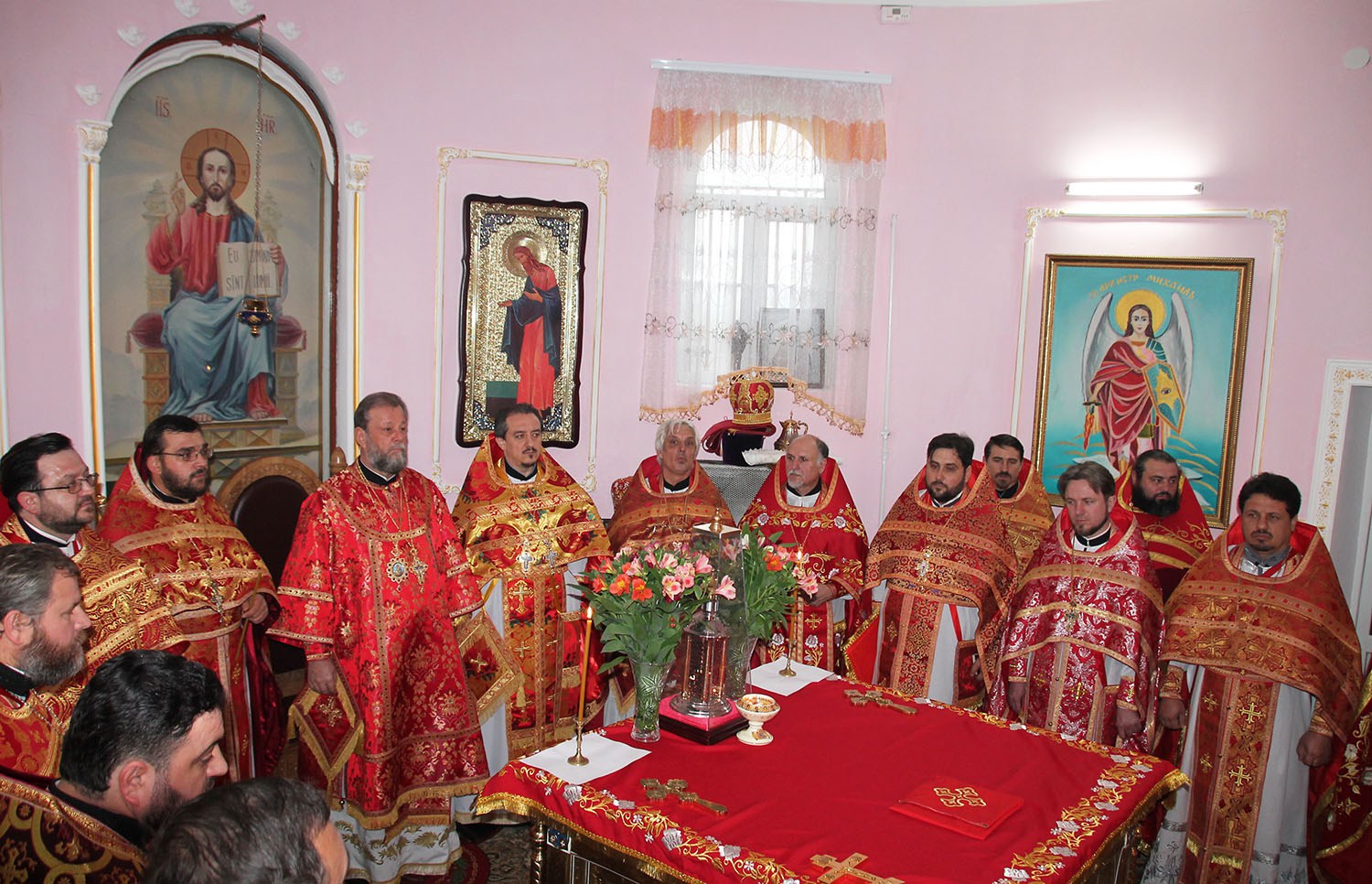 Before the Divine Liturgy, His Eminence Vladimir officiated the consecration service of the Holy Table of the newly built church.