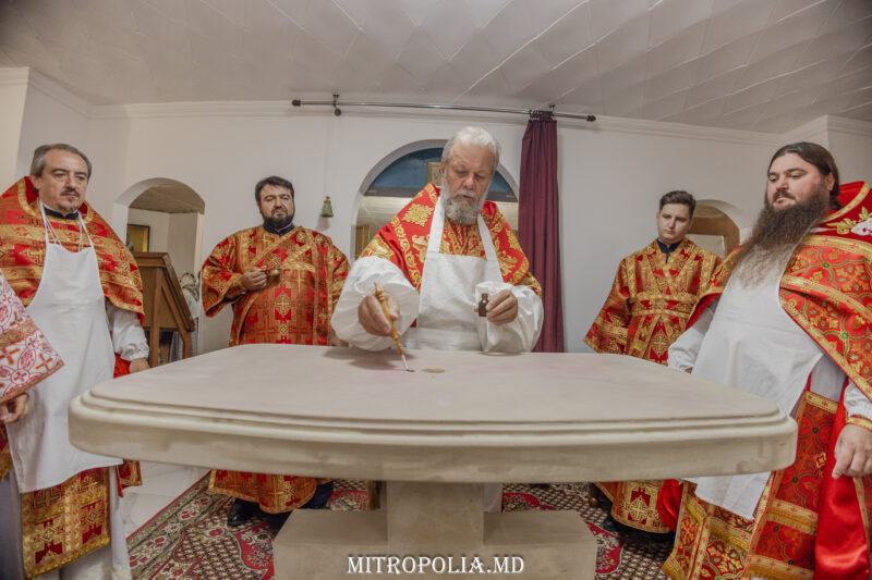 On the twelfth Sunday after the Pentecost, the Metropolitan of Chisinau and All Moldova, His Eminence Metropolitan Vladimir, officiated the consecration of the Holy Table in the altar dedicated to St. Hierarch Spiridon of the church under construction of the Synaxis of the Apostles in Codru, Chisinau.