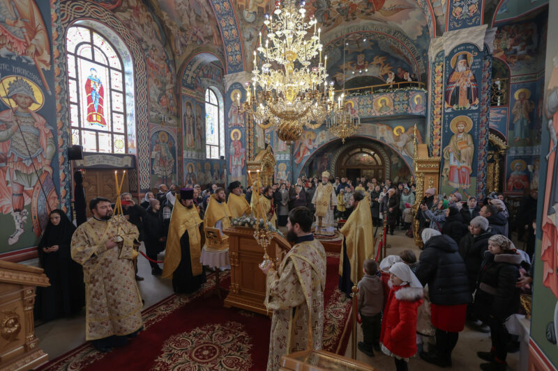 Joining His Eminence in prayer during the Divine Liturgy were Protopriest Vadim Cheibaș, Secretary to the Metropolitan; Very Reverend Archimandrite Andrei (Cotruță), spiritual father of the monastery; a host of priests and deacons; Reverend Abbess Martha, the monastery’s superior; the monastic community; students of the monastery’s school; and the faithful gathered for the service.