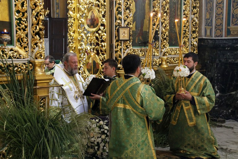 Sunday, 27 May 2018, on the Feast of the Holy Trinity, the Hierarch of the Orthodox Church of Moldova celebrated the Divine Liturgy in the Nativity of the Lord Metropolitan Cathedral in Chisinau, assisted by the Cathedral Dean, Fr. Vadim Cheibas and a synaxis of priests and deacons.