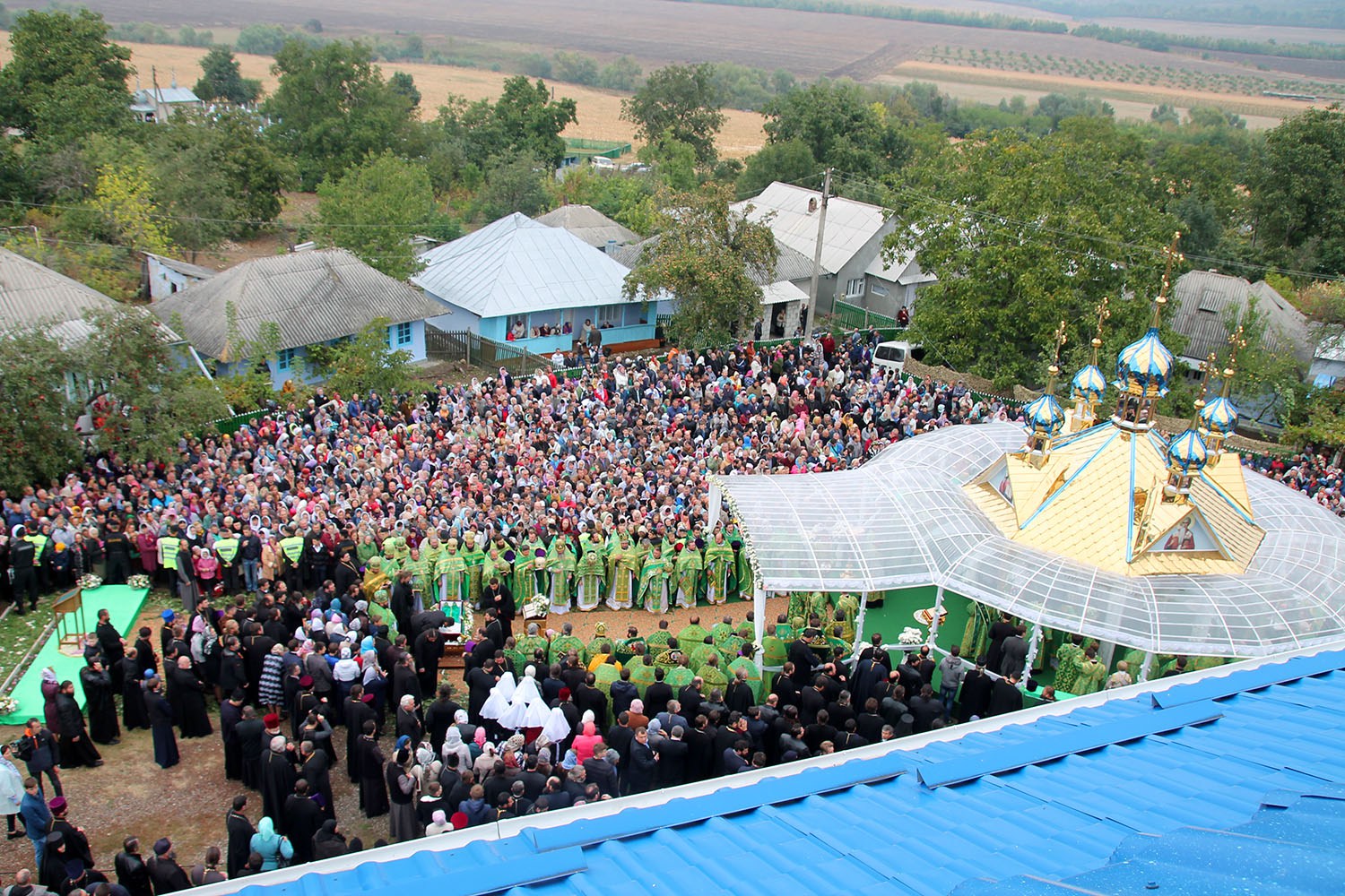 The Divine Liturgy was officiated by the Archpastor of the Orthodox Church of Moldova, His Eminence Metropolitan Vladimir, assisted by HE Sava, Archbishop of Tiraspol and Dubasari, HE Alexei Archbishop of Balta and Ananiev (Ukraine), HG Petru, Bishop of Ungheni and Nisporeni, HG Anatolie, Bishop of Cahul and Comrat, HG Marchel, Bishop of Balti and Falesti, HG Nicodim, Bishop of Edinet and Briceni, and HG Ioan, Bishop of Soroca and Vicar of the Metropolis of Moldova.