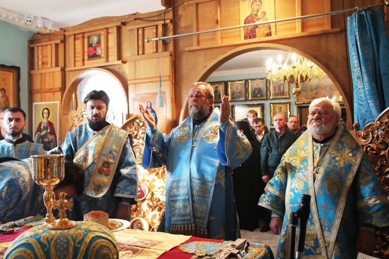 The clergy and laity prayed at the Divine Service for the holy intercession of the Mother of God, our Lady Theotokos.