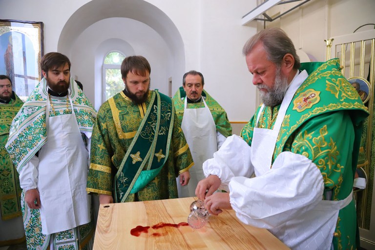 After the consecration service, the Divine Liturgy was celebrated. Metropolitan Vladimir was assisted at the Divine Service by archpriest Vadim Cheibas, Metropolitan secretary, archpriest Anatolie Stefanov, Ialoveni District Dean, archpriest Petru Pisica, secretary of Ialoveni Deanery, priest Eugen Sprâncean, parish rector, and other priests and deacons.