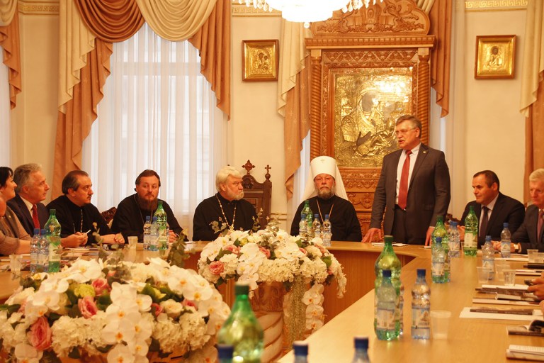 Metropolitan Vladimir of Chisinau and Moldova, Bishop Anatolie of Cahul and Comrat, Bishop Ioan of Soroca, Vicar of the Metropolis of Moldova, archpriest Vadim Cheibas, Metropolitan Secretary, and other clerics participated in the conference organized by the Metropolis of Chisinau and all Moldova in collaboration with the Academy of Science of Moldova, the Institute of Cultural Patrimony, and the Executive Committee of Gagauz administrative territorial unit.