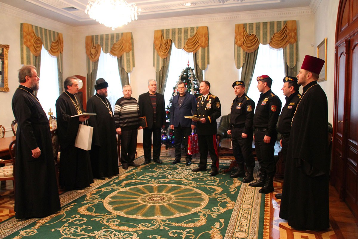 The Vice-Minister congratulated the Metropolitan on the new calendar year, and underlined the willingness and welcoming of more open and stronger collaboration with the Church in the new year. On the occasion of the 25th anniversary of the foundation of Carabineri Troops of the MIA, and in sign of appreciation of the devotion and pastoral ministry among MIA and CTD, Metropolitan Vladimir and Archpriest Vadim Cheibas were awarded the anniversary distinction “Carabineri Troops – 25 years since the foundation”.