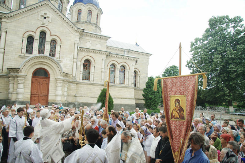 After the Divine Liturgy, the Metropolitan headed a procession around the Cathedral of the Monastery, followed by all clergymen, monks, and lay Christians present. Later, His Eminence Vladimir, assisted by all priests present, celebrated the service of commemoration of the reposed in Christ Bishop Dormedont (Cecan), followed by the Metropolitan’s congratulation message to the monastic settlement and pilgrims of the monastery, mentioning outstanding importance of the monastery and special merit of Archimandrite Paisie (Cecan), hegumen of the settlement. The special greeting of the holiday, “Christ Ascended!” was received with much joy, to which all those present answered “Truly He Ascended! Father Paisie (Cecan), thanked the Hierarch for the congratulated, ensuring His Eminence of further zeal and sonly obedience.
