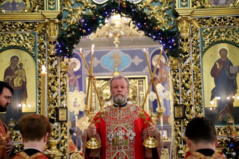 The arch-pastor was assisted at the service by archpriest Vadim Cheibas, Cathedral Dean, and numerous clergy of the holy shrine.