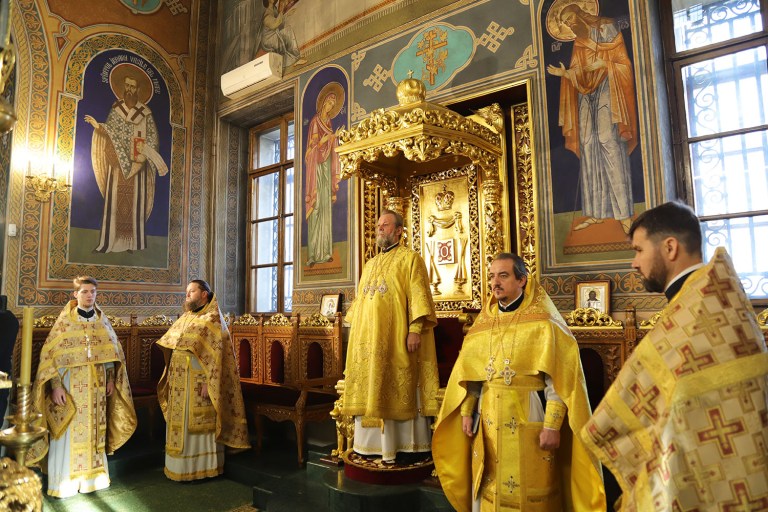 The arch-pastor was assisted at the service by archpriest Vadim Cheibas, Cathedral Dean, and the synaxis of the Cathedral clergy. Praying with the liturgical community was archpriest Ioan Gherbovetchi, the Dean of Orthodox Parishes in Portugal of Corsun Diocese.