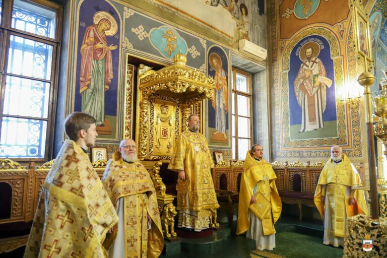 Praying with the arch-pastor in the holy shrine were archpriest Vadim Cheibas, Cathedral Dean and Metropolitan Secretary, together with the clergy of the Metropolitan Cathedral.