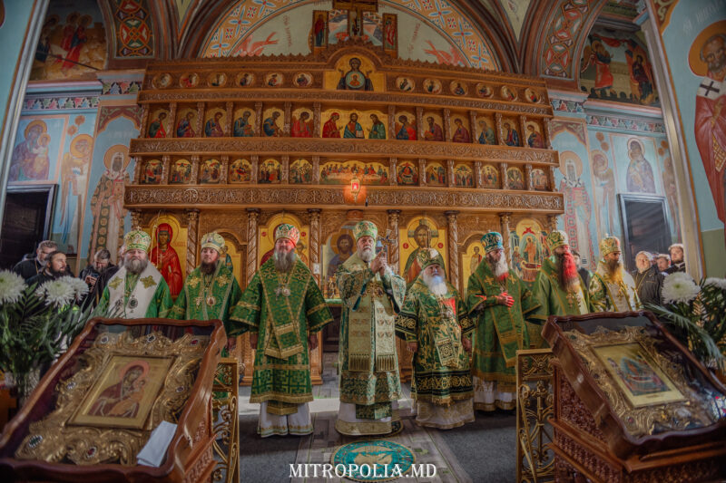 The Divine Liturgy was officiated by His Eminence Metropolitan Vladimir, Primate of the Orthodox Church of Moldova, at the Dormition of the Mother of God Church. He was joined by His Eminence Vikenty, Metropolitan of Tashkent and Uzbekistan, His Eminence Sava, Archbishop of Tiraspol and Dubasari, His Grace Iriney, Bishop of Orsk and Gai, His Grace Ioan, Bishop of Soroca and Drochia, His Grace Filaret, Bishop of Căpriana, and Vicar Bishops: His Grace Nicolae of Ceadîr-Lunga and His Grace Patrocl of Dondușeni, along with the abbot of the monaster, Archimandrite Paisie, Archimandrite Ioan (Danilescu), and a choir of priests and deacons.