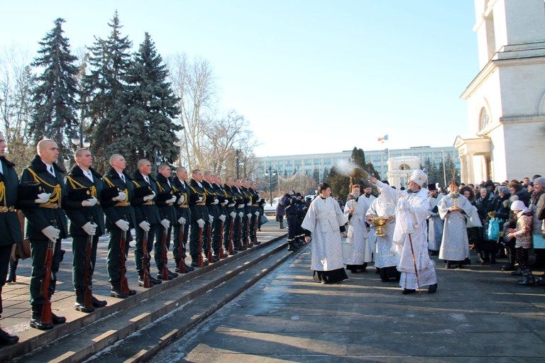 Present at the Divine Service was President of the country, Mr. Igor Dodon. Traditionally, soldiers of the National Army participated in the Blessing of the Waters service, making several shots into the air, symbolizing the thunder-like voice of God-Father Who witnessed onto our Lord Jesus Christ during His Baptism.